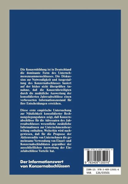 Anders als im angelsachsischen Sprachraum werden in Deutschland empirische Untersuchungen zur Ntitzlichkeit von publizierten Iahresabschliissen immer noch recht selten vorgenommen. Seit der ersten deutschen BuchverOffentli chung zu diesem Themengebiet von Perlitz tiber "Die Prognose des Untemeh menswachstums aus Iahresabschltissen deutscher Aktiengesellschaften", die ebenfalls in dieser Schriftenreihe erschienen ist, bilden empirische Untersu chungen zur Messung der Ntitzlichkeit von Iahresabschliissen einen For schungsschwerpunkt des Instituts fUr UntemehmungsfUhrung und Untemeh mensforschung an der Ruhr-Universitat Bochum. Das vorliegende, auf einer Bochumer Dissertation basierende Buch setzt diese Tradition fort. Obwohl seit der Aktienrechtsreform von 1965 von vielen Obergesellschaften neben dem EinzelabschluB auch die Aufstellung und Publikation von Konzem abschliissen verlangt wird, liegt eine empirische Untersuchung tiber den Aussa gegehalt der zusatzlich aufzustellenden konsolidierten Iahresabschltisse bisher nicht vor. Mit der Untersuchung zur Messung des Informationswertes von Kon zemabschltissen greift der Verfasser daher erstmals eine nicht nur ftir die empi rische IahresabschluBforschung sondem auch fUr weite Kreise von Rechnlmgs legungsadressaten bedeutsame Fragestellung auf. Zunachst tiberpriift er - unab hangig von bestimmten Informationsinteressen - an der Veranderung der mit Kennzahlenwerten gebildeten Untemehmensrankings, welche Auswirkungen die zusatzliche Analyse der konsolidierten IahresabschluBdaten auf die Unter nehmensbeurteilung haben kann. In welcher Weise die Moglichkeit zur Prognose der Aktienrendite beriihrt wird, wenn anstelle der Kennzahlen aus Einzelabschliissen beide Rechnungslegungssysteme ausgewertet werden, wird an der Gegentiberstellung der Klassifikationsergebnisse von univariaten und multivariten Diskriminanzanalysen dargestellt. Hierftir werden die untersuchten Gesellschaften in zwei Gruppen - positive und negative Entwicklung der urn Markteinfltisse bereinigten Aktienrendite - eingeordnet.
