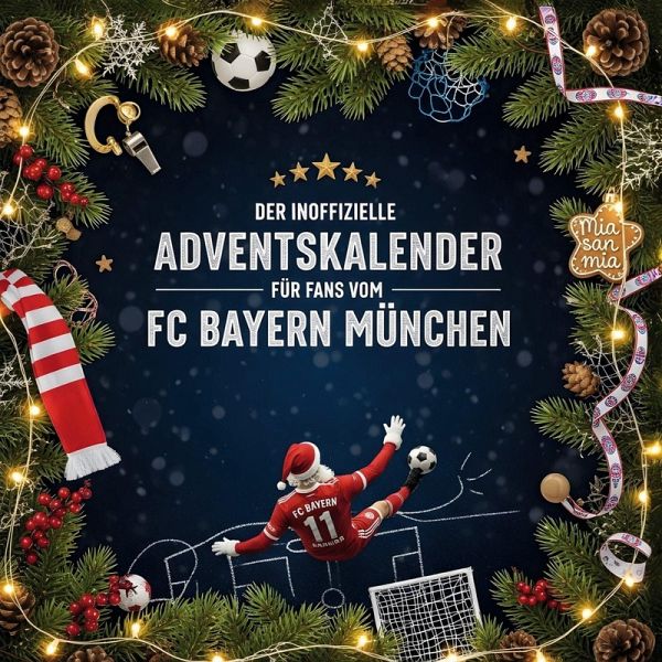 Was wirklich in den Köpfen von Bayern-Fans während der Weihnachtszeit vorgeht, ist kein Geheimnis mehr. Was passiert, wenn die Leidenschaft für den Rekordmeister auf die besinnlichste Zeit des Jahres trifft, offenbart sich hier auf 24 einzigartige Weisen.Dieses Buch ist die perfekte Wahl für:_ Alle, deren Herz nicht nur zur Weihnachtszeit rot-weiß schlägt._ Jene, die das ideale Geschenk für einen treuen Anhänger des Rekordmeisters suchen._ Fans, die den "Mia san mia"-Geist auch abseits des Spielfelds mit Humor und Kreativität zelebrieren möchten."Der inoffizielle Adventskalender für Fans vom FC Bayern München" ist ein täglicher Begleiter durch den Dezember. Hinter 24 Türchen verbergen sich humorvolle Geschichten, kreative Ideen und überraschende Fakten rund um den FC Bayern. Von einem satirischen Fan-Gesetzbuch über die richtige Geschenkpapier-Wahl bis hin zu einem Rezept für den perfekten Allianz-Arena-Punsch - jede Seite ist eine Hommage an die schönste Nebensache der Welt, verpackt in festlicher Stimmung und begleitet von passenden Illustrationen.Der Inhalt bietet eine abwechslungsreiche Mischung:_ 24 unterhaltsame Kapitel voller Fan-Kultur und Weihnachtsstimmung._ Witzige Kurzgeschichten, kreative Rezepte und überraschende Fun Facts._ Praktische Lifehacks und satirische Anleitungen für den Fan-Alltag._ Liebevoll gestaltete Illustrationen, die jede Seite zu einem Highlight machen.Dieses Buch verkürzt die Wartezeit auf Heiligabend und das nächste große Spiel auf die denkbar unterhaltsamste Weise. Eine einzigartige Zusammenstellung, die zeigt, dass die Liebe zum Verein und die Magie der Weihnachtszeit perfekt zusammenpassen. Der Countdown für eine unvergessliche Adventszeit für jeden Fan des FC Bayern München kann beginnen.