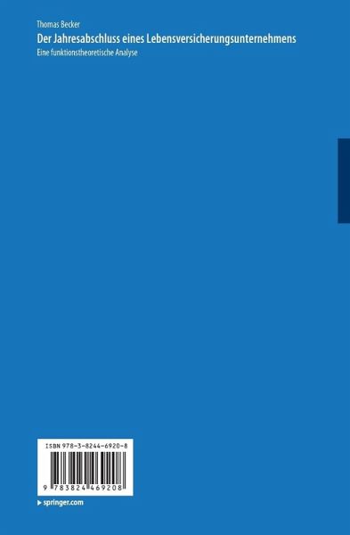 Der Jahresabschluss eines Unternehmens als formalisiertes Abbild der ökonomischen Realität wird auf der Grundlage festgelegter Abbildungsregeln erstellt. Hierbei existieren für Lebensversicherungsunternehmen spezielle Vorschriften, die aufgrund ihrer besonderen Geschäftstätigkeit entstanden sind. Thomas Becker beschäftigt sich mit der Frage, inwieweit der Jahresabschluss eines Lebensversicherungsunternehmens bzw. die dafür maßgeblichen Rechtsvorschriften als sachgerecht bezeichnet werden können. Der Autor unterscheidet hierbei zwischen Problemen der Informationsfunktion und versicherungsspezifischen Fragen der Zahlungsbemessungsfunktion des Jahresabschlusses.