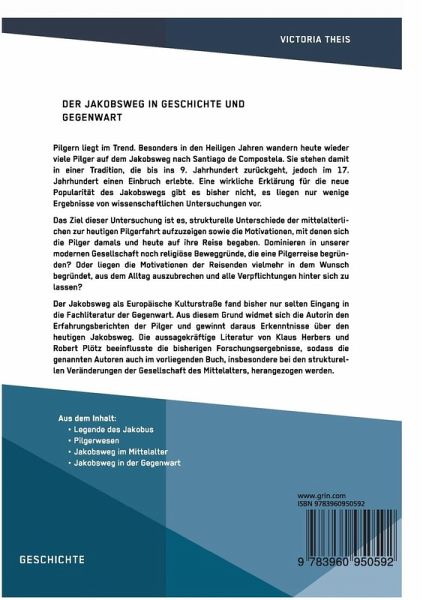 Pilgern liegt im Trend. Besonders in den Heiligen Jahren wandern heute wieder viele Pilger auf dem Jakobsweg nach Santiago de Compostela. Sie stehen damit in einer Tradition, die bis ins 9. Jahrhundert zurückgeht, jedoch im 17. Jahrhundert einen Einbruch erlebte. Eine wirkliche Erklärung für die neue Popularität des Jakobswegs gibt es bisher nicht, es liegen nur wenige Ergebnisse von wissenschaftlichen Untersuchungen vor. Das Ziel dieser Untersuchung ist es, strukturelle Unterschiede der mittelalterlichen zur heutigen Pilgerfahrt aufzuzeigen sowie die Motivationen, mit denen sich die Pilger damals und heute auf ihre Reise begaben. Dominieren in unserer modernen Gesellschaft noch religiöse Beweggründe, die eine Pilgerreise begründen? Oder liegen die Motivationen der Reisenden vielmehr in dem Wunsch begründet, aus dem Alltag auszubrechen und alle Verpflichtungen hinter sich zu lassen? Der Jakobsweg als Europäische Kulturstraße fand bisher nur selten Eingang in die Fachliteratur derGegenwart. Aus diesem Grund widmet sich die Autorin den Erfahrungsberichten der Pilger und gewinnt daraus Erkenntnisse über den heutigen Jakobsweg. Die aussagekräftige Literatur von Klaus Herbers und Robert Plötz beeinflusste die bisherigen Forschungsergebnisse, sodass die genannten Autoren auch im vorliegenden Buch, insbesondere bei den strukturellen Veränderungen der Gesellschaft des Mittelalters, herangezogen werden.Aus dem Inhalt: -Legende des Jakobus;-Pilgerwesen;-Jakobsweg im Mittelalter;-Jakobsweg in der Gegenwart