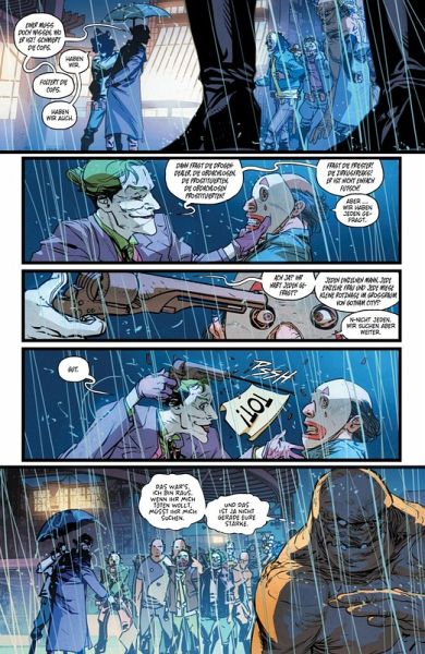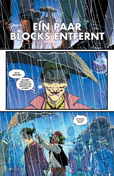 SCHLACHTFELD GOTHAM CITYDer Joker kommt zurück nach Gotham City. Doch dort treibt schon ein anderer Joker sein Unwesen. Die beiden teilen die Verbrecher der Stadt in zwei Lager und so kommt es schließlich zur unausweichlichen Schlacht der beiden Killerclowns! Hier entscheidet sich, wer stirbt, wer überlebt - und wer zuletzt lacht! Denn es geht nicht nur darum, wer der "Boss" in der Stadt ist, sondern auch um die Frage: Wer ist eigentlich der echte Joker?Der abschließende Band der atemberaubenden Joker-Serie von Matthew Rosenberg (Batman - Detective Comics), Carmine Di Giandomenico (Flash) und Pulp-Spezialist Francesco Francavilla (Batman: Der schwarze Spiegel), der gemeinsam mit Rosenberg eine Zusatz-Story beisteuert.FINALAUSGABEENTHÄLT: THE JOKER: THE MAN WHO STOPPED LAUGHING 10-12