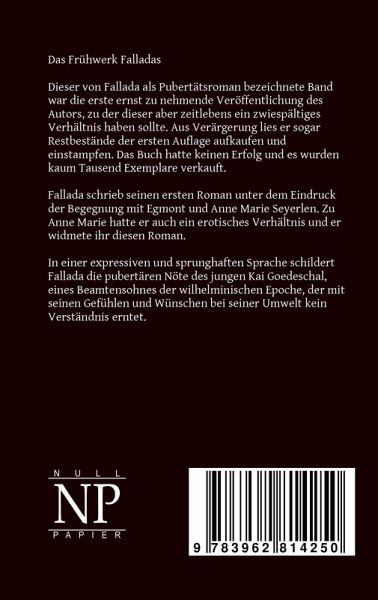 Dieser von Fallada als Pubertätsroman bezeichnete Band war die erste ernst zu nehmende Veröffentlichung des Autors, zu der dieser aber zeitlebens ein zwiespältiges Verhältnis haben sollte. Aus Verärgerung lies er sogar Restbestände der ersten Auflage aufkaufen und einstampfen. Das Buch hatte keinen Erfolg und es wurden kaum Tausend Exemplare verkauft.