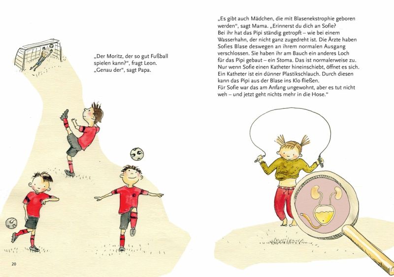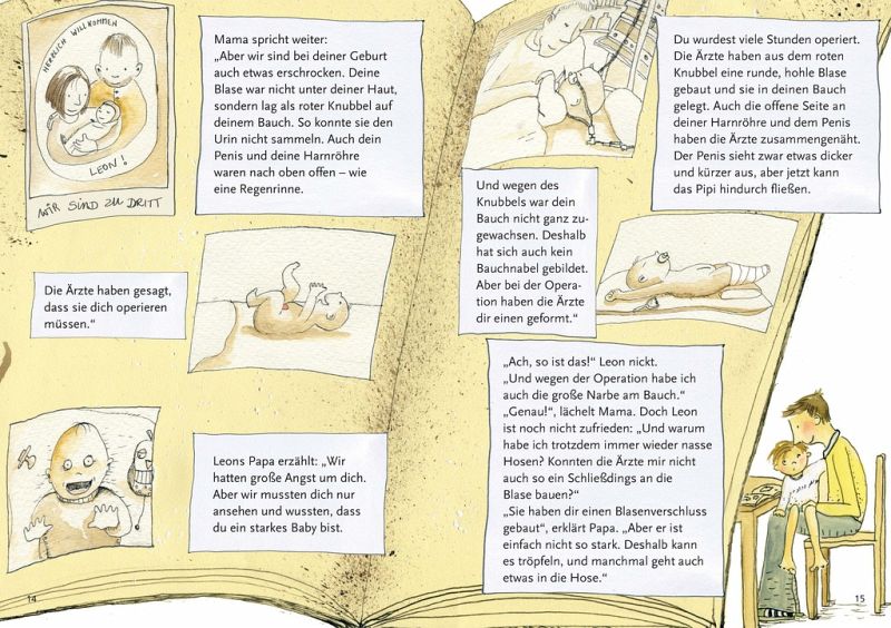 Leon ist ein Abenteurer. Aber er ist auch ein bisschen anders als seine Freunde: Er wurde mit Blasenekstrophie geboren. Was das ist, ist ziemlich kompliziert. Deshalb weiß Leon nicht genau, was er antworten soll, als er auf seinen winzigen Bauchnabel angesprochen wird. Doch zum Glück gibt es Mama und Papa, die ihm alles noch einmal erklären. Denn echte Abenteurer brauchen Antworten. Dann können sie sich wieder ein Stück weiter wagen - zum Beispiel in unbekannte Gewässer auf Schatzsuche ...Dieses Kinderfachbuch hilft betroffenen Kindern, den eigenen Körper besser zu verstehen, und ermutigt, offen und selbstbewusst mit den Einschränkungen durch den Blasenekstrophie-Epispadie-Komplex umzugehen. Im Fachteil kommen Betroffene selbst zu Wort, erzählen von wichtigen Schlüsselerlebnissen und persönlichen Lösungswegen. Für Kinder ab 4 Jahren.