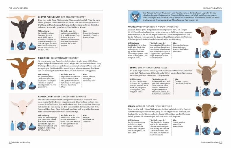 Ausführliches Käsewissen zu Geschichte und Produktion, verschiedenen Milchsorten und milchgebenden Tieren, Herkunft und Käseverkostung.