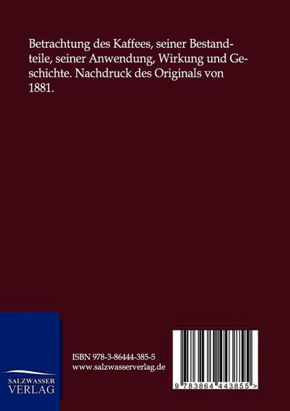 Betrachtung des Kaffees, seiner Bestandteile, seiner Anwendung, Wirkung und Geschichte. Nachdruck des Originals von 1881.