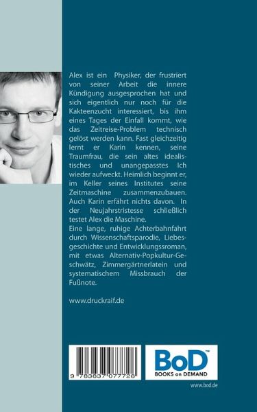 Alex ist ein Physiker, der frustriert von seiner Arbeit die innere Kündigung ausgesprochen hat und sich nur noch für die Kakteenzucht interessiert, bis ihm eines Tages der Einfall kommt, wie das Zeitreiseproblem technisch gelöst werden kann. Fast gleichzeitig lernt er Karin kennen, seine Traumfrau. Heimlich beginnt er, im Keller seines Institutes seine Zeitmaschine zusammenzubauen. In der Neujahrstristesse schließlich testet Alex die Zeitmaschine...Eine lange, ruhige Achterbahnfahrt durch Wissenschaftsparodie, Liebesgeschichte und Entwicklungsroman, mit etwas Alternativ-Popkultur-Geschwätz, Zimmergärtnerlatein und systematischem Missbrauch der Fußnote.