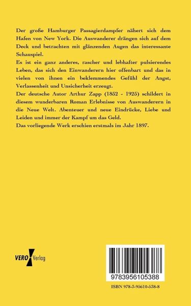 Der deutsche Autor Arthur Zapp (1852 - 1925) schildert in diesem wunderbaren Roman Erlebnisse von Auswanderern in die Neue Welt. Abenteuer und neue Eindrücke, Liebe und Leiden und immer der Kampf um das Geld.