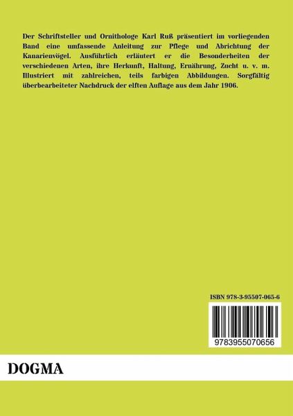 Der Schriftsteller und Ornithologe Karl Ruß präsentiert im vorliegenden Band eine umfassende Anleitung zur Pflege und Abrichtung der Kanarienvögel. Ausführlich erläutert er die Besonderheiten der verschiedenen Arten, ihre Herkunft, Haltung, Ernährung, Zucht u. v. m. Illustriert mit zahlreichen, teils farbigen Abbildungen. Sorgfältig überbearbeiteter Nachdruck der elften Auflage aus dem Jahr 1906.
