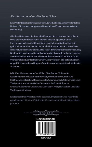 Katzen, Korruption und der Kampf um Wahrheit! Bremen-Nord während der Pandemie: Die Welt steht still, doch in den Schatten formt sich eine Bedrohung. Ein introvertierter Mann, eine glamouröse Influencerin und eine widerstandsfähige Nachbarschaft geraten sie in das Visier eines skrupellosen Geheimbundes, der das Showbusiness kontrolliert - und ihr Leben bedroht. Doch sie sind nicht allein. Babo, Rippchen, Mimi, Findi und Arnuld, fünf einzigartiger Katzen, stehen ihnen treu zu Seite und werden in einer Zeit der Spaltung und Isolation zum Symbol für Hoffnung, Gemeinschaft und den Mut, sich der Dunkelheit zu stellen. Ein sozialkritischer Roman über das, was uns trennt, und das, was uns verbindet. Über Angst und Zusammenhalt, Macht und Widerstand, Liebe und Freundschaft und der wichtigsten Erkenntnis von allen: Niemand ist wirklich allein.