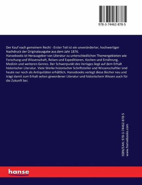 Der Kauf nach gemeinem Recht - Erster Teil ist ein unveränderter, hochwertiger Nachdruck der Originalausgabe aus dem Jahr 1876.