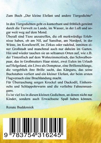 Was gibt es Größeres als die Fantasie? Um uns herum ergießt sich eine Welt in Fakten und lässt kaum noch den Platz für gedankliche Freiräume. Aber eben genau diese Freiräume sind so wichtig für das seelische Gleichgewicht. Und nichts, aber auch gar nichts sollte uns bedeutsamer sein als die gesunde seelische Entwicklung von Kindern. In der Welt der Erwachsenen geht leider die Sicht aus Kinderaugen viel zu schnell verloren. Die Kinderbuchautorin Renate Buddensiek hat sich diese Sicht bewahrt, um sie weitergeben zu können. Eine Besonderheit, wie ich finde - und eine Kostbarkeit, die in der…mehr
