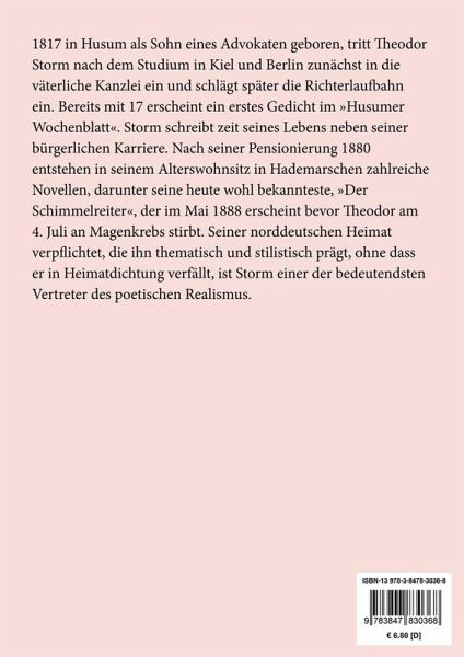 Theodor Storm: Der kleine Häwelmann / Hinzelmeier / Hans Bär. Drei Märchen Lesefreundlicher Großdruck in 16-pt-Schrift Großformat, 210 x 297 mm Berliner Ausgabe, 2019 Durchgesehener Neusatz mit einer Biographie des Autors bearbeitet und eingerichtet von Theodor Borken Der kleine Häwelmann: Erstdruck im »Volksbuch für das Jahr 1850 für Schleswig, Holstein und Lauenburg«. Hrsg. von Karl Leonhard Biernatzki, Altona 1850. Hinzelmeier: Erstdruck im »Volksbuch für das Jahr 1851 für Schleswig, Holstein und Lauenburg.« Hrsg. von Karl Leonhard Biernatzki, Altona 1850. Erschien unter dem Titel: »Stein und Rose. Ein Märchen«. Hans Bär: Erschien in »Schriften der Theodor-Storm-Gesellschaft 1«, Heide, Holst. (Boyens) 1952, S.9¿14. Textgrundlage ist die Ausgabe: Theodor Storm: Sämtliche Werke in vier Bänden. Herausgegeben von Peter Goldammer, Berlin und Weimar: Aufbau, 1967. Umschlaggestaltung von Thomas Schultz-Overhage unter Verwendung des Bildes: Ivan Aivazovsky, Sturm im Mondlicht, 1841. Gesetzt aus der Minion Pro, 16 pt. Henricus Edition Deutsche Klassik UG (haftungsbeschränkt) Über den Autor: 1817 in Husum als Sohn eines Advokaten geboren, tritt Theodor Storm nach dem Studium in Kiel und Berlin zunächst in die väterliche Kanzlei ein und schlägt später die Richterlaufbahn ein. Bereits mit 17 erscheint ein erstes Gedicht im »Husumer Wochenblatt«. Storm schreibt zeit seines Lebens neben seiner bürgerlichen Karriere. Nach seiner Pensionierung 1880 entstehen in seinem Alterswohnsitz in Hademarschen zahlreiche Novellen, darunter seine heute wohl bekannteste, »Der Schimmelreiter«, der im Mai 1888 erscheint bevor Theodor am 4. Juli an Magenkrebs stirbt. Seiner norddeutschen Heimat verpflichtet, die ihn thematisch und stilistisch prägt, ohne dass er in Heimatdichtung verfällt, ist Storm einer der bedeutendsten Vertreter des poetischen Realismus.