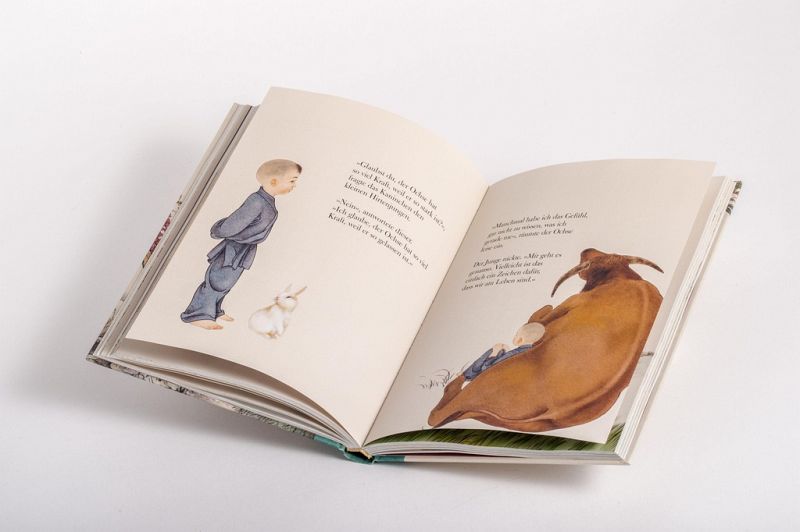 In dieser inspirierenden und wunderschön illustrierten Fabel offenbart sich die Philosophie östlicher Weisheiten von über Tausenden von Jahren. Es ist hier ein kleiner Junge, der im Kleinen die ganze Welt erfährt und so Lebensfreude, Freundschaft und Glück findet. Zusammen mit einem Ochsen und einem weißen Kaninchen erlebt er inmitten der alltäglichen Arbeit Liebe, Mitgefühl und Gemeinschaft. In ihren Gesprächen tauschen sich die drei über Erlebtes aus und dringen vor zu den tiefen Wahrheiten des Lebens.