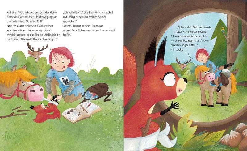 Um herauszufinden, ob ein richtiger Ritter in ihm steckt, macht er sich mit seinem Pony auf den Weg. Unterwegs begegnet er Menschen und Tieren. Versorgt und verarztet und verscheucht sogar Diebe. Egal, wo er hinkommt, die Menschen sind von ihm begeistert. Bestärkt, dass er doch ein richtiger Ritter sei, zieht er wieder zurück ins Schloss, nur um abermals zu erleben, dass sein Vater nur aufs Äußere schaut. Doch seine neuen Freunde, bis hin zum König Gutherz, verteidigen ihn. Denn einen echten Ritter macht nicht seine Rüstung aus, sondern sein gutes Herz.