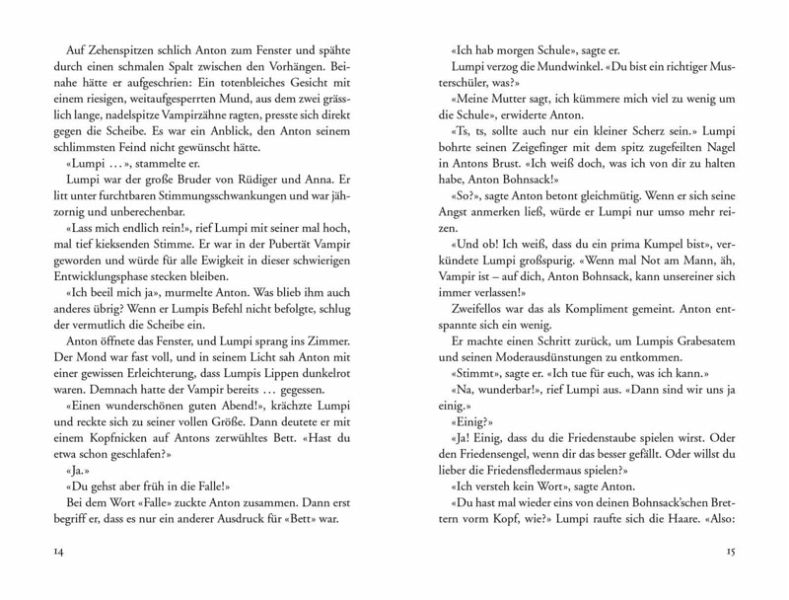 Dank einer Einladung von Olga Fräulein von Seifenschwein, die Anton auf keinen Fall ablehnen darf, nimmt er an der höchsten und geheimsten Zeremonie der Vampire teil: der Nacht der Letzten Verwandlung! In dieser Nacht, in der es keine Geheimnisse, keine Lügen und keine Täuschungen gibt, erfährt Anton, was es bedeutet, ein Mensch unter Vampiren zu sein. Selbst Rüdiger, der kleine Vampir, kann ihm dieses Mal nicht zu Hilfe kommen ...