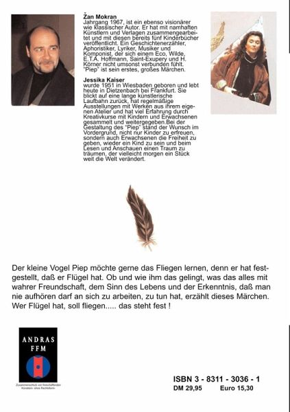 "Der kleine Vogel Piep möchte fliegen lernen, denn er hat festgestellt, daß er Flügel hat. Ob und wie ihm das gelingt, was das alles mit wahrer Freundschaft, dem Sinn des Lebens und der Tatsache, daß man nie aufhören darf an sich zu arbeiten zu tun hat, erzählt dieses Buch. Wer Flügel hat, soll fliegen... das steht fest !"