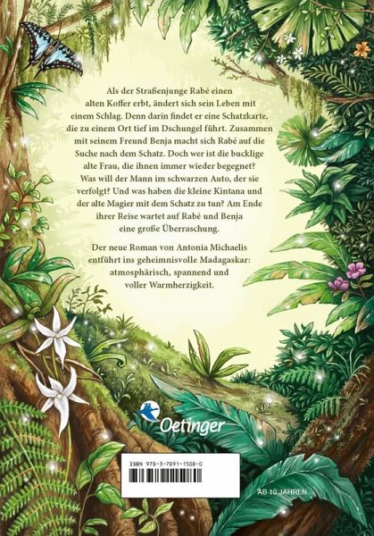 Als der Straßenjunge Rabé einen alten Koffer erbt, ändert sich sein Leben mit einem Schlag. Denn darin findet er eine Schatzkarte, die zu einem Ort tief im Dschungel führt. Zusammen mit seinem Freund Benja macht sich Rabé auf die Suche nach dem Schatz. Doch wer ist die buckelige alte Frau, die ihnen immer wieder begegnet? Was will der Mann im schwarzen Auto, der sie verfolgt? Und was haben die kleinen Kintana und der alte Magier mit dem Schatz zu tun? Am Ende ihrer Reise wartet auf Rabé und Benja eine große Überraschung.