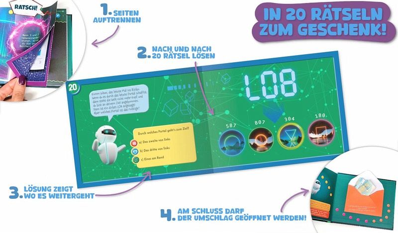 In jedem Abschnitt muss ein Rätsel gelöst werden um weiterzukommen und hoffentlich letztendlich zum Geschenk zu gelangen. Die Lösung des Rätsels zeigt an, an welcher Stelle im Buch weitergelesen werden soll.