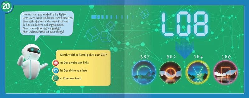"Hallo, ich bin Dekodiereinheit Y4T89n und ich habe ein paar Dimensionen für dich generiert. 20 ausgefuchste Rätsel warten auf dich, bevor du zum ultimativen letzten Portal kommst - und dir dein Geschenk abholen kannst! Bist du bereit für eine andere Dimension?!"