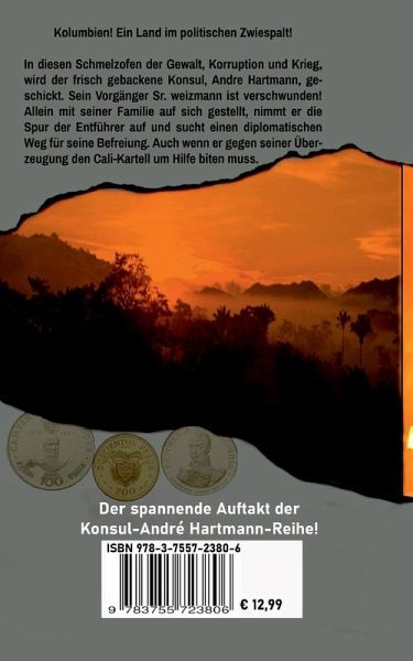 Kolumbien! Ein Land im politischen Zwiespalt! In diesen Schmelzofen der Gewalt, Korruption und Krieg, wird der frisch gebackene Konsul, André Hartmann, geschickt. Sein Vorgänger Dr. Weizmann ist verschwunden! Allein mit seiner Familie auf sich gestellt, nimmt er die Spur der Entführer auf und sucht einen diplomatischen Weg für Weizmanns Befreiung. Auch wenn er gegen seiner Überzeugung den Cali-Kartell, um Hilfe bitten muss.