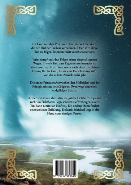 Ein Land mit drei Provinzen. Drei starke Charaktere, die den Ruf der Freiheit vernehmen. Doch ihre Wege, ihm zu folgen, könnten nicht verschiedener sein.Jorin kämpft mit den Folgen seines eingeschlagenen Weges. Er stellt fest, dass Regieren umfassender ist, als er erwartet hätte. Linea strebt nach einer friedlichen Lösung für ihr Land, bis sie eine Entscheidung trifft, von der es kein Zurück mehr gibt.Die uralte Feindschaft zwischen den McBrights und der Königin nimmt neue Züge an. Ryen wagt den einen endgültigen Schritt.Keiner von ihnen ahnt, dass die größte Gefahr für Eyaland nicht im Sichtbaren liegt, sondern tief verborgen lauert. Ein Bann nimmt an Kraft zu. Ein anderer Bann fordert seine zeitliche Erfüllung. Eyalands Schicksal liegt in der Hand einer einzigen Person.