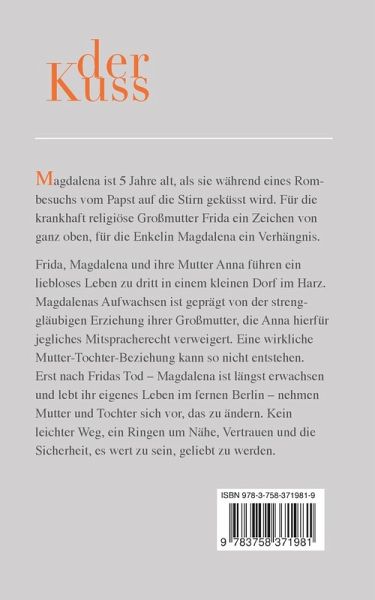 schmerzlich spürte, denn sie sehnte sich nach der Nähe ihrer Mutter. Erst mit dem Tod der Großmutter…mehrDie fünfjährige Magdalena wurde vom Papst auf die Stirn geküsst, und für ihre sehr gläubige Großmutter war dies ein außergewöhnliches Zeichen. Sie übernahm die Erziehung von Lena, während deren Mutter Anna das Nachsehen hatte. Anna fügte sich und passte sich den Wünschen ihrer Mutter an, was Lena schmerzlich spürte, denn sie sehnte sich nach der Nähe ihrer Mutter. Erst mit dem Tod der Großmutter begann eine Annäherung zwischen Tochter und Mutter.