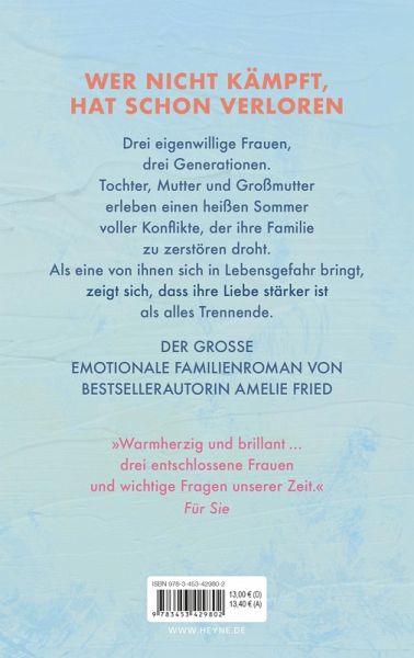 Das Verweben eines Familien-Unterhaltungsromanes mit den derzeit weiterhin aktuellen und brisanten politischen Themen ist Amelie Fried hier sehr gut gelungen. Drei Frauen, jede auf ihre Weise stark und kämpferisch, haben mir ein tolles Leseerlebnis geschenkt. Das Ende hat mich mit den vielen kritischen Situationen, die ich hier beim lesen durchlebt habe, wieder versöhnt.