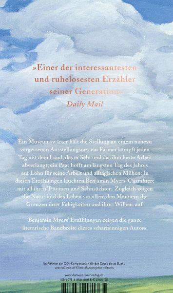 Ein Museumswärter hält Stellung an einem nahezu vergessenen Ausstellungsort; ein Farmer kämpft jeden Tag mit dem Land, das er liebt und das ihm harte Arbeit abverlangt; ein Paar hofft am längsten Tag des Jahres auf Lohn für seine Arbeit und alltäglichen Mühen: - in diesen Erzählungen leuchten Benjamin Myers' Charaktere mit all ihren Träumen und Sehnsüchten. Zugleich zeigen die Natur und das Leben vor allem den Männern die Grenzen ihrer Fähigkeiten und ihres Willens auf.Myers' Erzählungen zeigen die ganze literarische Bandbreite dieses scharfsinnigen Autors.
