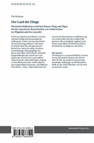 In Wirnts «Wigalois» und Ulrichs «Lanzelet» nehmen Dinge eine herausragende Stellung ein, indem sie eine spezifische Sinnerweiterung erfahren. Man kann sie jedoch nicht für sich genommen betrachten, denn sie stehen in einem wechselseitigen Bezugsgefüge mit Raum und Figur. Dieses Buch verknüpft Fragestellungen des «spatial turn» mit denen des «material turn» und eröffnet dadurch einen mehrschichtigen Zugang zu dem Phänomen der Anderwelten in den ausgewählten Romanen. Mit Hilfe der Trias Raum - Ding - Figur beleuchtet die Autorin die Konstitution und Bedeutung von Anderwelten für die erzählte Welt genauer. Dies ermöglicht zugleich auch einen neuen Blick auf die Konstruktion des Bereichs des Eigenen, des Hofes.