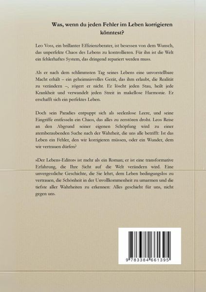 Stellen Sie sich vor, Sie könnten jeden Fehler im Leben korrigieren. Würden Sie es tun?Für den brillanten Effizienzberater Leo Voss ist die Antwort ein klares Ja. In seiner Welt ist das Leben ein fehlerhaftes Programm: Der Stau am Morgen, die unlogischen Emotionen seiner Freundin, die Ineffizienz seiner Mitmenschen - alles sind Bugs, die es zu beheben gilt. Er ist besessen von der Idee, dass wahrer Frieden nur in einem Zustand makelloser, kontrollierter Perfektion zu finden ist.Nachdem sein eigenes Leben spektakulär zu scheitern droht, geschieht das Unmögliche: Ein geheimnisvoller alter Gärtner überreicht ihm ein Werkzeug, das seine kühnsten Träume übertrifft - den Lebens-Editor. Mit der Macht, die Realität nach seinem Willen umzuschreiben, beginnt Leo seine ultimative Mission.Er zögert nicht. Er löscht jeden Stau, heilt jede Krankheit, beendet jeden Streit und verwandelt jede Niederlage in einen triumphalen Sieg. Er erschafft sich ein perfektes Leben, eine perfekte Beziehung undeine perfekte Welt, frei von Schmerz, Widerstand und Chaos. Er wird zum Gott seiner eigenen Realität.Doch sein perfektes Paradies hat einen tödlichen Preis. Während er die Oberfläche glättet, beginnt das Fundament der Welt zu zerbrechen. Seine Korrekturen entfesseln ein unsichtbares Chaos, das alles zu zerstören droht, was er je geliebt hat. Gefangen in seiner seelenlosen Schöpfung, muss Leo die schrecklichste aller Wahrheiten erkennen: Was, wenn der größte Fehler im System nicht das Leben ist, sondern er selbst?Warum Sie dieses Buch nicht mehr aus der Hand legen werden:"Der Lebens-Editor" ist mehr als ein fesselnder Roman; es ist eine Reise zu der tiefsten Frage, die wir uns alle stellen:Wie finden wir Frieden in einer unperfekten Welt?Diese Geschichte wird Sie packen, weil sie Ihre eigenen geheimsten Wünsche nach Kontrolle und Perfektion auslebt - nur um Ihnen dann mit atemberaubender Klarheit zu zeigen, warum die wahre Magie des Lebens in seinen Fehlern, seinen Umwegen und seinem wunderschönen, unordentlichen Chaos verborgen liegt.Wenn Sie bereit sind für eine Geschichte, die nicht nur unterhält, sondern Sie daran erinnert, dem Leben bedingungslos zu vertrauen und die Schönheit in jedem unperfekten Moment zu finden, dann ist dies Ihr Buch.Klicken Sie auf "Jetzt kaufen" und beginnen Sie eine Reise, die Ihre Sicht auf die Welt für immer verändern wird.
