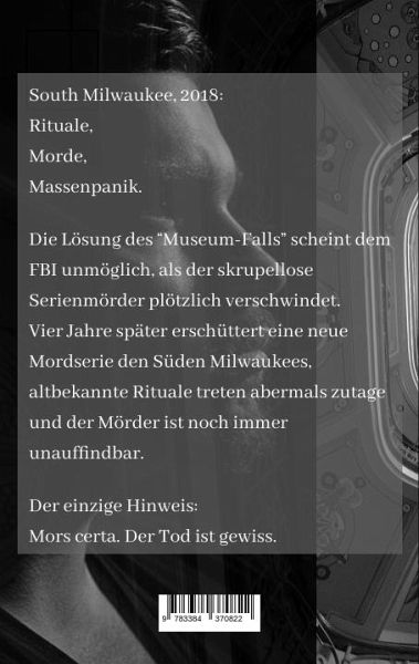 South Milwaukee, 2018: Rituale, Morde, Massenpanik. Die Lösung des "Museums-Falls" scheint dem FBI unmöglich, als der skrupellose Serienmörder plötzlich verschwindet. Vier Jahre später erschüttert eine neue Mordserie den Süden Milwaukees, altbekannte Rituale treten abermals zutage und der Mörder ist noch immer unauffindbar. Der einzige Hinweis: Mors certa. Der Tod ist gewiss.