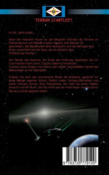 Im 26. Jahrhundert...Nach der riskanten Flucht vor den Beyjakin stranden die Terraner im Niemandsraum am Rande unserer Galaxie. Ihre Mission ist gescheitert, alle Ressourcen sind verbraucht und die Verfolger sind ihnen unerbittlich auf der Spur, als sie plötzlich eine Entdeckung machen... Am Rande des Kosmos, am Ende der Hoffnung: bestreiten Sie mit Commander Frank Dorn, Captain Sabrina Henderson, Colonel Leslie Draper und Ariana den letzten verzweifelten Kampf der Menschheit um ihr Überleben.Erleben Sie jetzt das dramatische Finale der Kultserie, gespickt mit rasanter Action, Gefühl, vielen Fantasy-Elementen und einem Schuss Humor. Eine Geschichte, die mehr als einen Helden braucht und ein Buch, das Sie nicht aus der Hand legen werden bevor Sie es zu Ende gelesen haben.