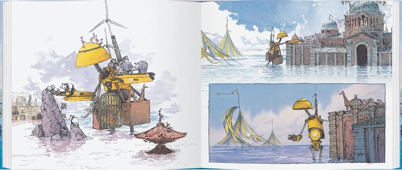 Eine große Flut hat die Erde überschwemmt. Nur die Tiere in einem Zoo haben überlebt und hoffen, von Wasser umschlossen, auf Rettung. Der Roboter NOA kümmert sich liebevoll um sie. Doch das Wasser steigt weiter und NOA weiß, dass er handeln muss. Er baut eine Arche und setzt die Segel, unsicher, wohin die Reise führen wird. Doch die Tiere haben Vertrauen in ihren Beschützer. Als sie auf einer Insel stranden, geschieht ein Wunder: ein Luftschiff nimmt Kurs auf die Insel - mit einem weiteren Roboter an Bord ...Aaron Becker erzählt in seinen filmisch atmosphärischen Bildern, wie wichtig es ist, dass sich jeder einzelne um das Wohl dieser Erde kümmert. Ein spannendes Abenteuer voller Hoffnung.