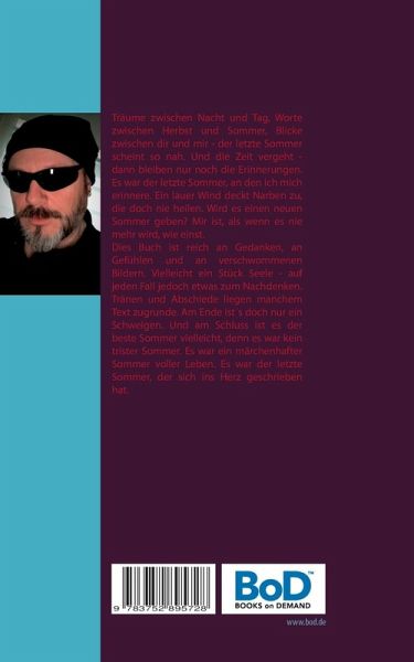 Träume zwischen Nacht und Tag, Worte zwischen Herbst und Sommer, Blicke zwischen dir und mir - der letzte Sommer scheint so nah. Und die Zeit vergeht - dann bleiben nur noch die Erinnerungen. Es war der letzte Sommer, an den ich mich erinnere. Ein lauer Wind deckt Narben zu, die doch nie heilen. Wird es einen neuen Sommer geben? Mir ist, als wenn es nie mehr wird, wie einst. Dies Buch ist reich an Gedanken, an Gefühlen und an verschwommenen Bildern. Vielleicht ein Stück Seele - auf jeden Fall jedoch etwas zum Nachdenken. Tränen und Abschiede liegen manchem Text zugrunde. Am Ende ist´s doch nur ein Schweigen. Und am Schluss ist es der beste Sommer vielleicht, denn es war kein trister Sommer. Es war ein märchenhafter Sommer voller Leben. Es war der letzte Sommer, der sich ins Herz geschrieben hat.