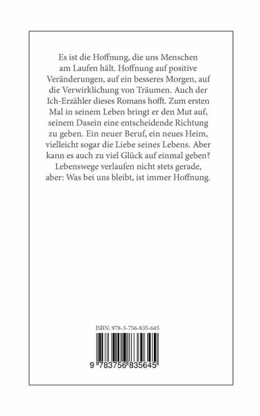 Es ist die Hoffnung, die uns als Menschen am Laufen hält. Hoffnung auf positive Veränderungen, auf ein besseres Morgen, auf die Verwirklichung von Träumen. Auch der Ich-Erzähler dieses Romans hofft. Zum ersten Mal in seinem Leben bringt er den Mut auf, seinem Dasein eine entscheidende Richtung zu geben. Alles lässt sich gut an: Ein neuer Beruf, ein neues Heim, vielleicht sogar die Liebe seines Lebens. Aber kann es auch zu viel Glück auf einmal geben? Lebenswege verlaufen nicht stets gerade, aber: Was bei uns bleibt, ist immer Hoffnung.