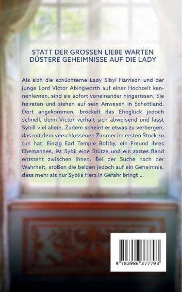 Statt der großen Liebe warten düstere Geheimnisse auf die Lady … Eine spannende Historical Romance voller Herzschmerz und Leidenschaft Als sich die schüchterne Lady Sibyl Harrison und der junge Lord Victor Abingworth auf einer Hochzeit kennenlernen, sind sie sofort voneinander hingerissen. Sie heiraten und ziehen auf sein Anwesen in Schottland. Dort angekommen, bröckelt das Eheglück jedoch schnell, denn Victor verhält sich abweisend und lässt Sybill viel allein. Zudem scheint er etwas zu verbergen, das mit dem verschlossenen Zimmer im ersten Stock zu tun hat. Einzig Earl Temple Boltby, ein Freund ihres Ehemannes, ist Sybil eine Stütze und ein zartes Band entsteht zwischen ihnen. Bei der Suche nach der Wahrheit, stoßen die beiden jedoch auf ein Geheimnis, das mehr als nur Sybils Herz in Gefahr bringt … Erste Leser:innenstimmen „Die neu verheiratete Lady Sibyl Harrisons zieht in ein schönes Anwesen in Schottland, nur um festzustellen, dass sie dort eine geheimnisvolle und distanzierte Ehe erwartet." „Die sympathische Lady Harrison und der Earl Boltby kommen sich näher und entwickeln eine zärtliche Beziehung, bei der man hilflos mitfiebert." „Dieser historische Liebesroman ist perfekt für Fans von romantischen Geschichten mit einem geheimnisvollen Twist! Die Seiten fliegen nur so dahin." „Durch den bildhaften Stil konnte ich mir die schottischen Handlungsorte sehr gut vorstellen. Ein Buch für unterhaltsame Lesestunden."