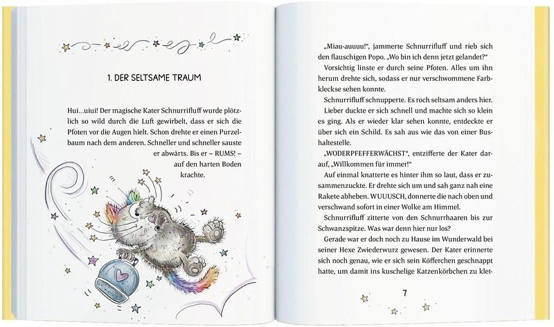 Dem magischen Katerchen Schnurrifluff fehlt es an Nichts! Im Wunderwald bei der Hexe Zwiederwurz in seinem kuscheligen Katzenkörbchen und den Bauch voll mit seiner Leibspeise Spaghetti könnte das Leben schöner nicht sein.