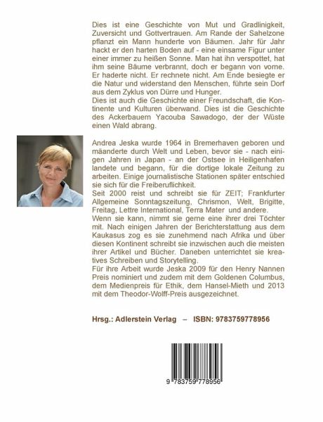 Dies ist eine Geschichte von Mut und Gradlinigkeit, Zuversicht und Gottvertrauen. Am Rande der Sahelzone pflanzt ein Mann hunderte von Bäumen. Jahr für Jahr hackt er den harten Boden auf - eine einsame Figur unter einer immer zu heißen Sonne. Man hat ihn verspottet, hat ihm seine Bäume verbrannt, doch er begann von vorne. Er haderte nicht. Er rechnete nicht. Am Ende besiegte er die Natur und widerstand den Menschen, führte sein Dorf aus dem Zyklus von Dürre und Hunger. Dies ist auch die Geschichte einer Freundschaft, die Kontinente und Kulturen überwand. Dies ist die Geschichte des Ackerbauern Yacouba Sawadogo, der der Wüste einen Wald abrang. Yacouba Sawadogo erhielt 2018 den Alternativen Nobelpreis. Herausgeber: Hans-Jürgen Sträter, Adlerstein Verlag