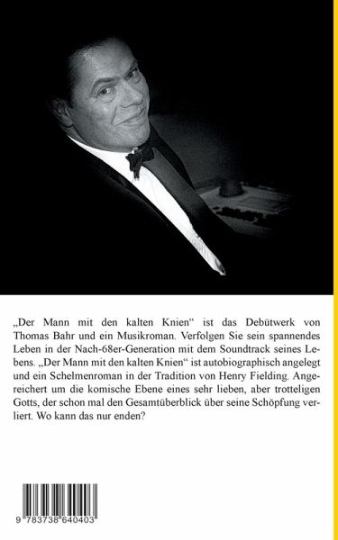 "Der Mann mit den kalten Knien" ist das Debütwerk von Thomas Bahr und ein Musikroman. Verfolgen Sie ein spannendes Leben in der Nach-68er-Generation mit dem Soundtrack seines Lebens. "Der Mann mit den kalten Knien" ist zu 100% autobiographisch und ein Schelmenroman in der Tradition von Henry Fielding. Angereichert um die hoffentlich lustig geratene Ebene eines sehr lieben, aber trotteligen Gotts, der schon mal den Gesamtüberblick über seine Schöpfung verliert. Wo kann das nur enden?