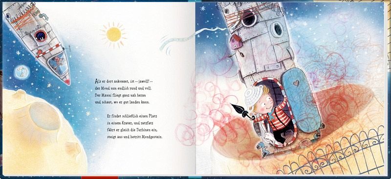 Gibt es ihn wirklich, den Mann im Mond? Manni will es unbedingt herausfinden! Kurzerhand bastelt er eine Rakete und wagt sich auf eine Reise ins All. Was er auf dem Mond erlebt und wen er dort findet, ist und bleibt ein wundersames Abenteuer ...