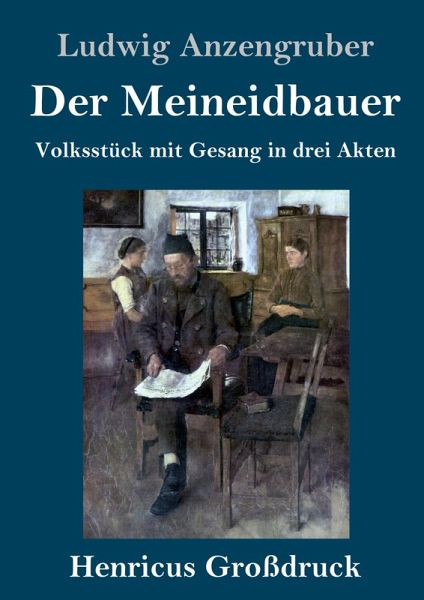Ludwig Anzengruber: Der Meineidbauer. Volksstück mit Gesang in drei Akten Lesefreundlicher Großdruck in 16-pt-Schrift Großformat, 210 x 297 mm Berliner Ausgabe, 2019 Durchgesehener Neusatz mit einer Biographie des Autors bearbeitet und eingerichtet von Theodor Borken Erstdruck: Wien (Rosner), 1871. Uraufführung am 9.12.1871, Theater an der Wien, Wien. Textgrundlage ist die Ausgabe: Ludwig Anzengruber: Der Meineidbauer. Herausgegeben und eingeleitet von Wilhelm Zentner, Stuttgart: Reclam, 1959 [Universal-Bibliothek, Band 133]. Umschlaggestaltung von Thomas Schultz-Overhage unter Verwendung des Bildes: Wilhelm Leibl, Der Zeitungsleser, 1891. Gesetzt aus der Minion Pro, 16 pt.