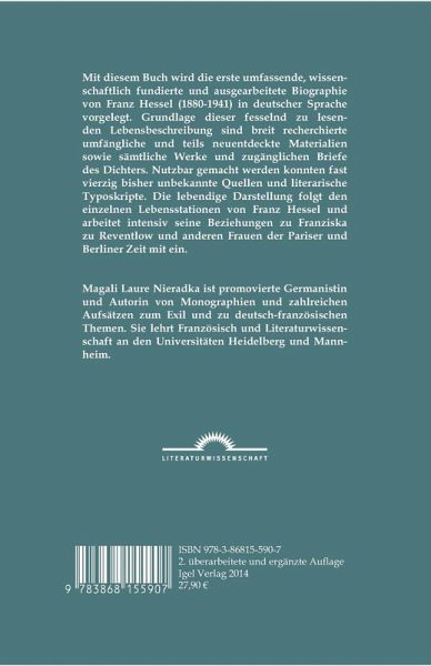 Mit diesem Buch wird die erste umfassende, wissenschaftlich fundierte und ausgearbeitete Biographie von Franz Hessel (1880-1941) in deutscher Sprache vorgelegt. Grundlage dieser fesselnd zu lesenden Lebensbeschreibung sind breit recherchierte umfängliche und teils neuentdeckte Materialien sowie sämtliche Werke und zugänglichen Briefe des Dichters. Nutzbar gemacht werden konnten fast vierzig bisher unbekannte Quellen und literarische Typoskripte. Die lebendige Darstellung folgt den einzelnen Lebensstationen von Franz Hessel und arbeitet intensiv seine Beziehungen zu Franziska zu Reventlow und anderen Frauen der Pariser und Berliner Zeit mit ein.