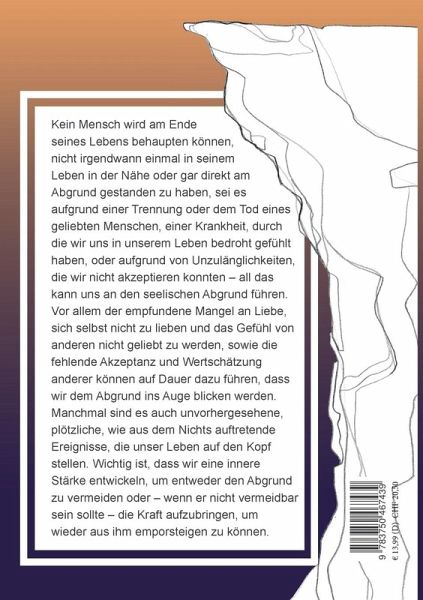 Wer hat nicht schon vor Problemen gestanden, die ihn in die Nähe oder unmittelbar an den seelischen, emotionalen Abgrund geführt haben? Gründe hierfür gibt es genug. Einige sind selbst verursacht, andere hingegen ereignen sich ohne unser bewusstes Zutun und das nicht selten ganz plötzlich. Häufig könnten wir den Blick in den Abgrund verhindern, wenn wir zuvor mehr innerliche Stärke erlangt hätten und das auf uns Zukommende nicht so negativ sehen würden. In diesem Buch sollen Ursachen und Gründe aufgezeigt werden, die den Menschen an den Abgrund führen können. Zudem werden dem Leser konkrete Lösungsansätze und Impulse mit auf den Weg gegeben, die ihm bei Krisen und Problemen dabei helfen können, den Blick und vor allem den Sturz in den Abgrund zu verhindern. Alle Kapitel sind um Aphorismen und Fragen ergänzt, die zum tieferen Nachdenken anregen sollen.