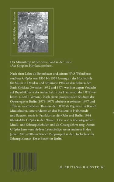 Der MisanthropDer Griesgram begegnet jedem von uns einmal täglich, nicht selten aber in uns selbst. Doch wenn man sich mit der nötigen Selbstironie und von außen betrachtet, kann so mancher schwerwiegender Moment zum regelrechten Spaß ausufern. Armin Gröpler bewegt das und er verleiht manchen Schwierigkeiten mit seinen Versen und Zeichnungen die ungezwungene Leichtigkeit, wie sie die Leserinnen und Leser bereits aus seinen Versen kennen. Die dreibändige Reihe "Aus Gröplers Hirnkatakomben" schliessen wir mit dem Misanthropen ab und wünschen viel Freude mit diesem Band sowohl , als auch mit allen drei Bänden der Reihe, die sich als Geschenk-Edition bestens (nicht nur für Misanthropen) eignet.
