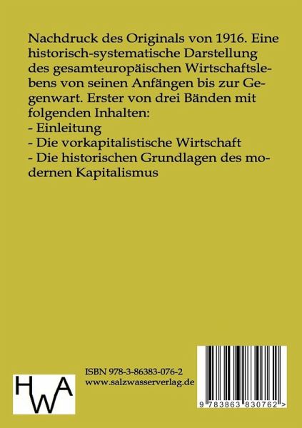 Nachdruck des Originals von 1916. Eine historisch-systematische Darstellung des gesamteuropäischen Wirtschaftslebens von seinen Anfängen bis zur Gegenwart. Erster von drei Bänden mit folgenden Inhalten: