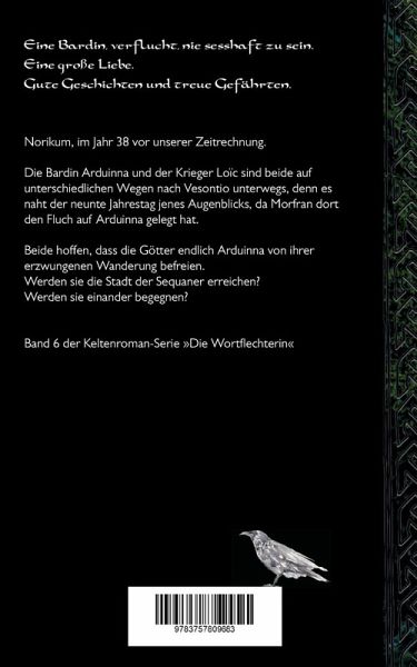 Noricum, 37 v. Chr. Die Bardin Arduinna und der Krieger Loïc sind beide auf unterschiedlichen Wegen nach Vesontio unterwegs, denn es naht der neunte Jahrestag jenes Augenblicks, da Morfran dort den Fluch auf Arduinna gelegt hat. Beide hoffen, dass die Götter endlich Arduinna von ihrer erzwungenen Wanderung befreien. Werden sie die Stadt der Sequaner erreichen? Werden sie einander begegnen?Band 6 der Keltenroman Serie "Die Wortflechterin".Tauch ein in die Welt der Kelten und fühle den Pulsschlag jener Zeit in dir, da Worte Waffen sein konnten und deine einzigen Freunde ein Wolfshund und ein Rabe!