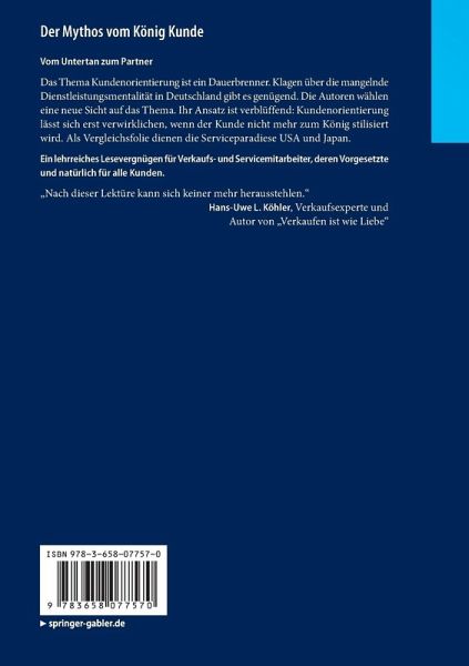 Das Thema Kundenorientierung ist ein Dauerbrenner. Klagen über die mangelnde Dienstleistungsmentalität in Deutschland gibt es genügend. Die Autoren wählen eine neue Sicht auf das Thema. Ihr Ansatz ist verblüffend: Kundenorientierung lässt sich erst verwirklichen, wenn der Kunde nicht mehr zum König stilisiert wird. Als Vergleichsfolie dienen die Serviceparadiese USA und Japan.
