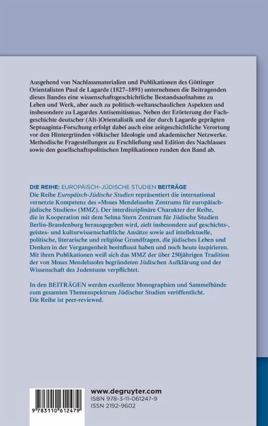 Ausgehend von Nachlassmaterialien und Publikationen des Göttinger Orientalisten Paul de Lagarde (1827-1891) unternehmen die Beitragenden dieses Bandes eine wissenschaftsgeschichtliche Bestandsaufnahme zu Leben und Werk, aber auch zu politisch-weltanschaulichen Aspekten und insbesondere zu Lagardes Antisemitismus. Neben der Erörterung der Fachgeschichte deutscher (Alt-)Orientalistik und der durch Lagarde geprägten Septuaginta-Forschung erfolgt dabei auch eine zeitgeschichtliche Verortung vor den Hintergründen völkischer Ideologie und akademischer Netzwerke. Methodische Fragestellungen zu Erschließung und Edition des Nachlasses sowie den gesellschaftspolitischen Implikationen runden den Band ab.