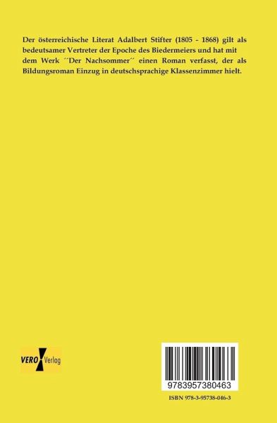 Der österreichische Literat Adalbert Stifter (1805 - 1868) gilt als bedeutsamer Vertreter der Epoche des Biedermeiers und hat mit dem Werk Der Nachsommer einen Roman verfasst, der als Bildungsroman Einzug in deutschsprachige Klassenzimmer hielt.