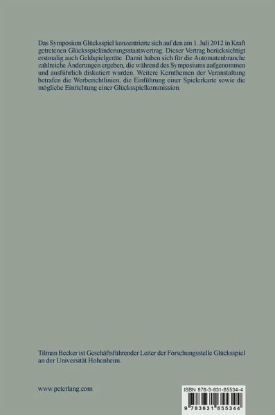 Inhalt: Wolfgang G. Crusen: Vorwort des Vorsitzenden des Beirates und des Kuratoriums - Tilman Becker: Vorwort des Geschäftsführenden Leiters der Forschungsstelle - Detlef Nage: Erfahrungen einer Lotteriegesellschaft mit einer Spielerkarte - Michael Ronellenfitsch: Informationsgehalt einer Spielerkarte - Dieter Richter: Erfahrungen bei der Zulassung von Geldspielgeräten - Thomas Noone: Erfahrungen bei der Prüfung von Geldspielgeräten - Tilman Becker: Glücksspielrechtliche Werberichtlinien - Tobias Hayer/Marc von Meduna: Was macht Geldspielgeräte gefährlich? - Tobias Wild: Erfahrungen der Länder bei der Regulierung von Geldspielgeräten - Gerhard Rombach: Erfahrungen mit dem Zusammenschluss der gemeinsamen Klassenlotterie der Länder (GKL) - Michael Burkert: Erfahrungen des deutschen Lotto- und Totoblocks (DLTB) - Armin Dittmann: Was können wir von den gemeinsamen Kommissionen der Landesmedienanstalten lernen? - Mette Slotved Thomsen: Tasks of a Gambling Authority - Stefan Kruse: «Ich spiele gerne».
